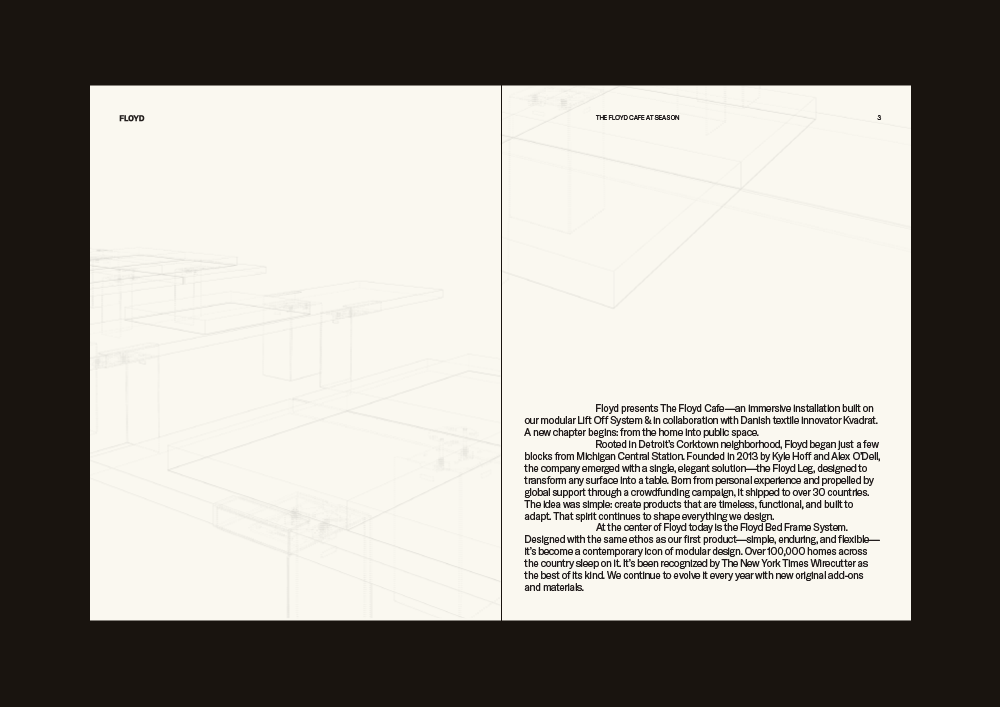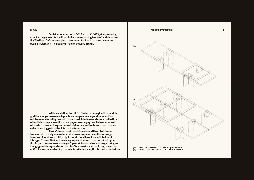 Art direction and design for Floyd’s temporary cafe space within the first annual Season Art Fair at Michigan Central. Event photography courtesy of Daniel Ribar.